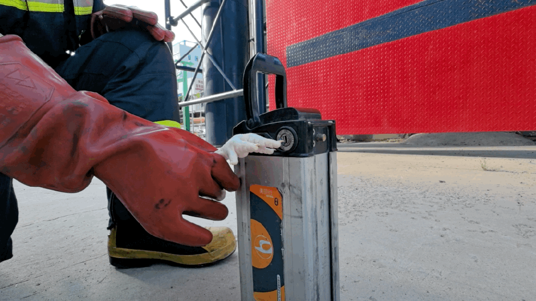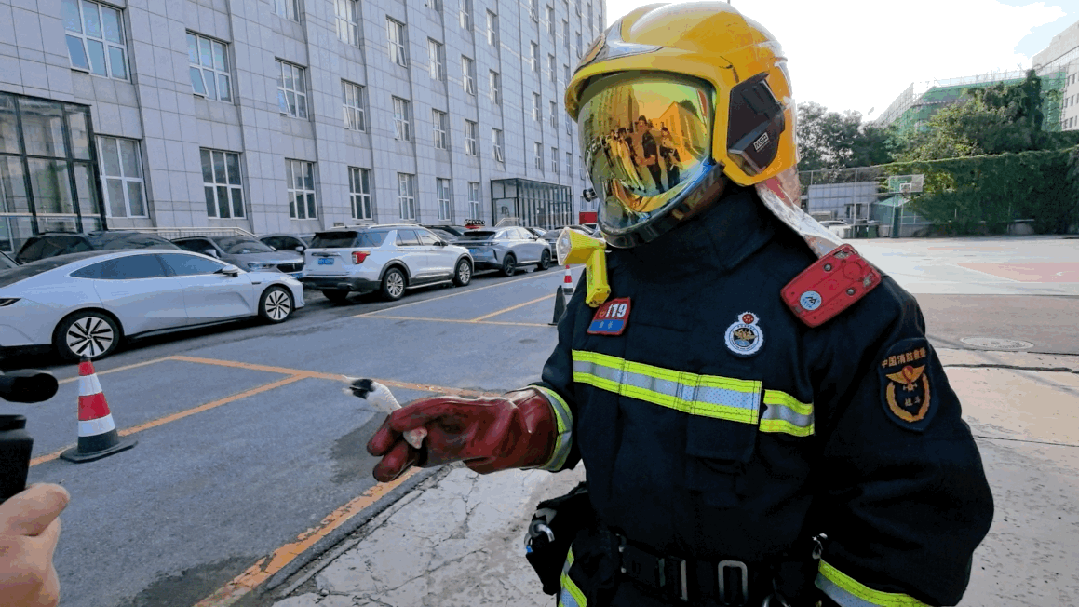 消防员用鸡爪模拟人手,将一个圆形铁片固定在鸡爪上。当铁片碰到电动车电池充电口处时,瞬间火花四溅。